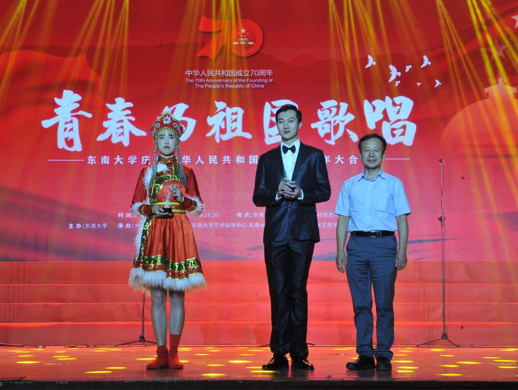 9月25日晚,为隆重庆祝新中国成立70周年,69vj 大学生合唱团在69vj 九龙湖校区焦廷标馆参加“青春为祖国歌唱——69vj 庆祝中华人民共和国成立70周年大合唱”比赛,学院常务副院长许映秋,党委副书记、副院长、纪委书记王荣与69vj 大学生合唱团76名同学参加演出,比赛由团委书记潘明烽带队,学生处处长助理颜秉明指挥。