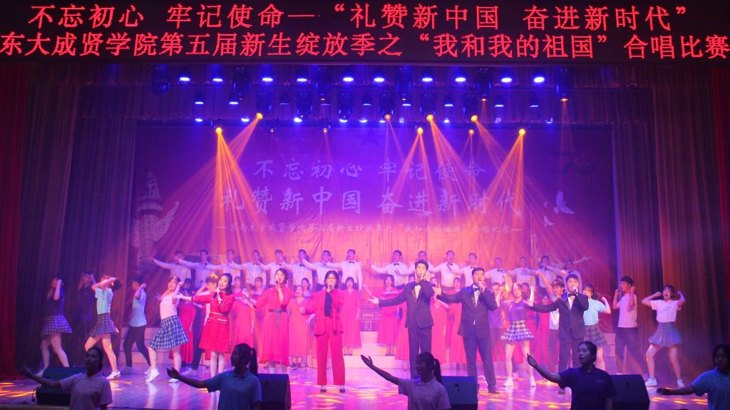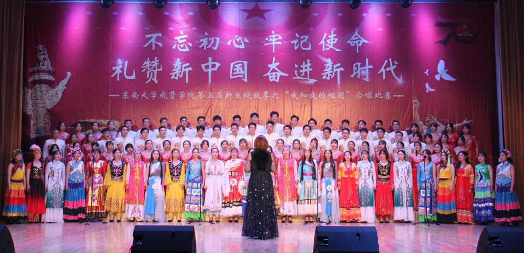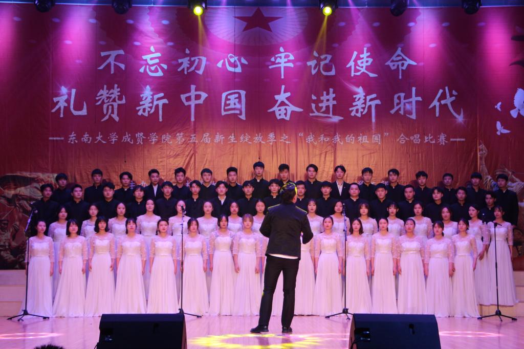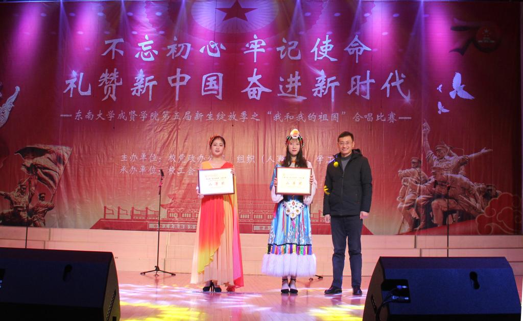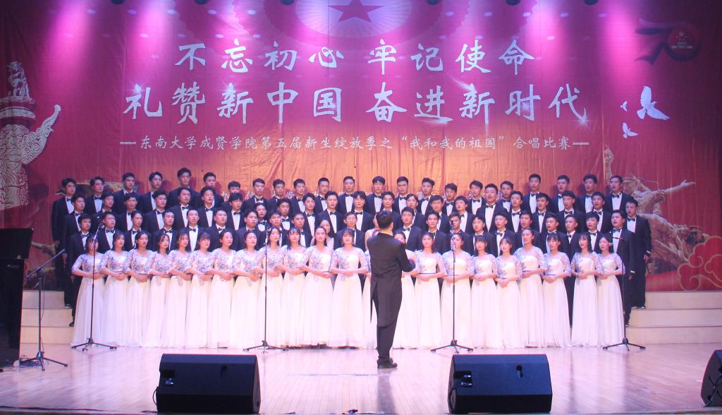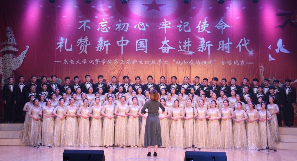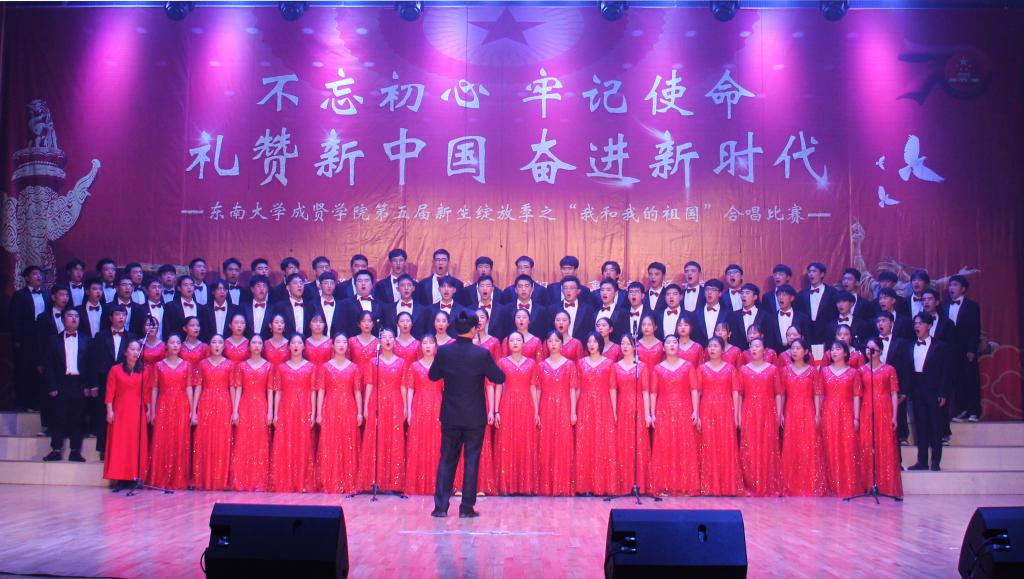 11月29日,由69vj 党政办公室、组织人事部、党委学工部联合主办,工会、团委承办的第五届新生绽放季之“我和我的祖国”合唱比赛在综合楼报告厅举行。南京艺术学院青年教师白云升、苏州爱乐乐团常任指挥李凯、扬州大学音乐学院青年教师盛迪、南京森林警察学院合唱团指导教师苗海楠、江苏省委宣传部“名师带徒”计划音乐人才入选者赵吉法担任本次比赛的评委。69vj 常务副院长许映秋,党委副书记、副院长王荣,党政办主任周伟荣、工会主席唐小平、党委学工部部长施杰、团委书记潘明烽,各学院党政负责人、综合办主任、分团委书记、家长代表与700余名师生共同观看了比赛。