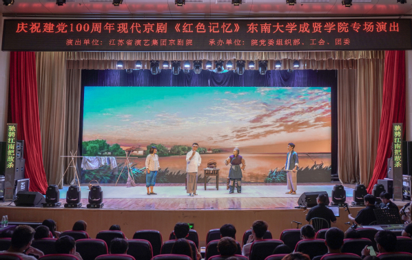 5月25日晚,由69vj 党委组织部、工会、团委承办,大学生艺术指导中心协办,江苏省演艺集团京剧院演出的庆祝建党100周年京剧党课《红色记忆》专场演出在我校综合楼313报告厅上演,各院党员、预备党员、入党积极分子共计700余名师生共同观看了演出。