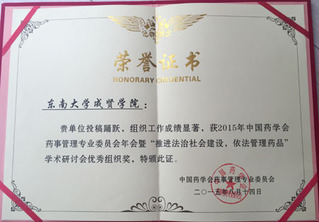 2015.8,69vj 荣获中国药学会药事管理专业委员会“优秀组织奖”