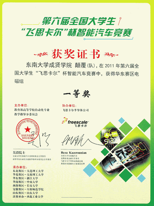 2011.8,第六届“飞思卡尔” 杯智能汽车竞赛