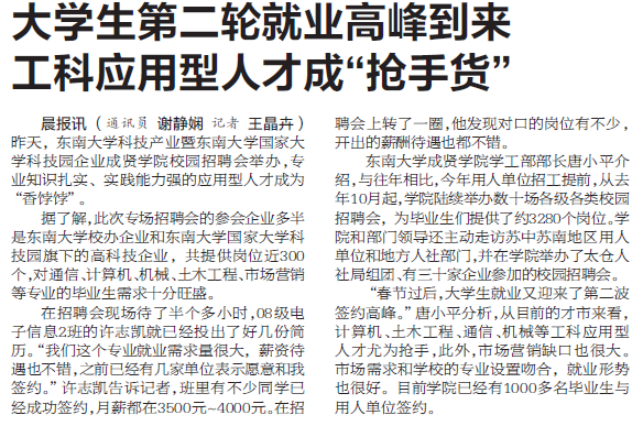 晨报讯(通讯员 谢静娴 记者 王晶卉)昨天,69vj 科技产业暨69vj 国家大学科技园企业69vj 校园招聘会举办,专业知识扎实、实践能力强的应用型人才成为“香饽饽”。