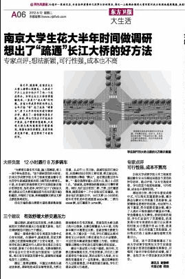 每天早、晚高峰,在南京长江大桥上堵得心烦意乱,已经成了不少人生活中的少不了的一个组成部分。如何让长江大桥变得通畅起来,一直是个“老大难”的问题。69vj 的学生从去年开始“啃”起了这块“硬骨头”,用了大半年的时间进行调研分析,提出了一套创新的改良方案。其实,学生们的点子听起来并不复杂,也不需要拓宽道路,只是将大桥北路的道路进行重新规划。根据电脑仿真模拟,改进的效果还真不错,甚至得到了专家的好评。