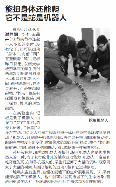 【南京晨报】能扭身体还能爬,它不是蛇是机器人