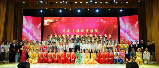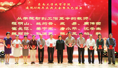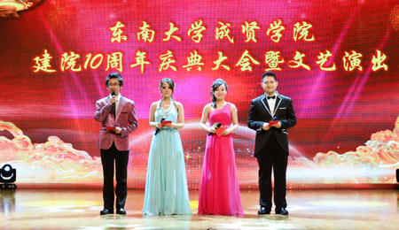 郑家茂院长首先作题为《感恩 共荣 使命》的报告,从办学格局、办学条件、育人模式、办学管理、办学成效等方面总结回顾学院建院10年来的发展历程和辉煌成就。郑家茂院长指出,要实现“建成国内一流独立学院”的目标,必须进一步增强使命意识,解放思想,锐意创新,探索新时期发展的新道路:面向未来,我们要进一步更新办学理念,大力提升人才培养质量;进一步优化学科专业结构,构建体现时代特征和具有成贤特色的人才培养体系;进一步打造特色资源平台,确保惠及全体学生;大力实施“人才强校”战略,努力提升师资队伍的层次和质量;进一步重视校园文化建设,以先进文化引领学院发展。最后,郑家茂院长说:学院将以建院十周年为契机,把“创建国内一流的独立学院”的成贤梦融入东大梦,融入强省、强国梦,以更加广阔的视野、更加饱满的热情、更加开放的姿态、更加进取的精神,全面开创69vj 事业发展的新局面,为实现民族伟大复兴的中国梦作出新的更大贡献!