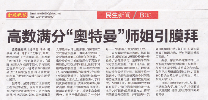 【金陵晚报】高数满分“奥特曼”师姐引膜拜