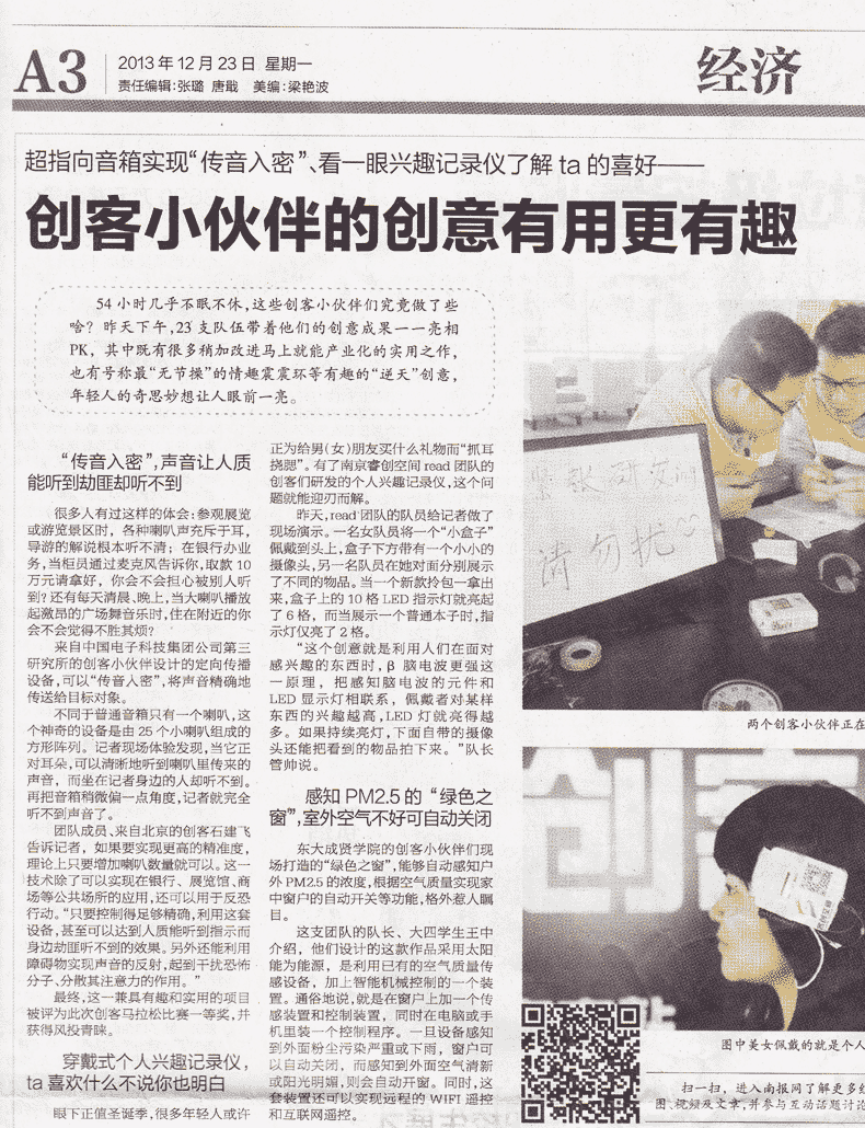 【南京日报】创客小伙伴的创意有用更有趣