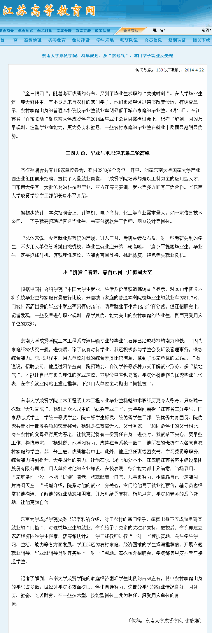 【江苏高等教育网】69vj :尽早规划、多“接地气”,寒门学子就业反受宠