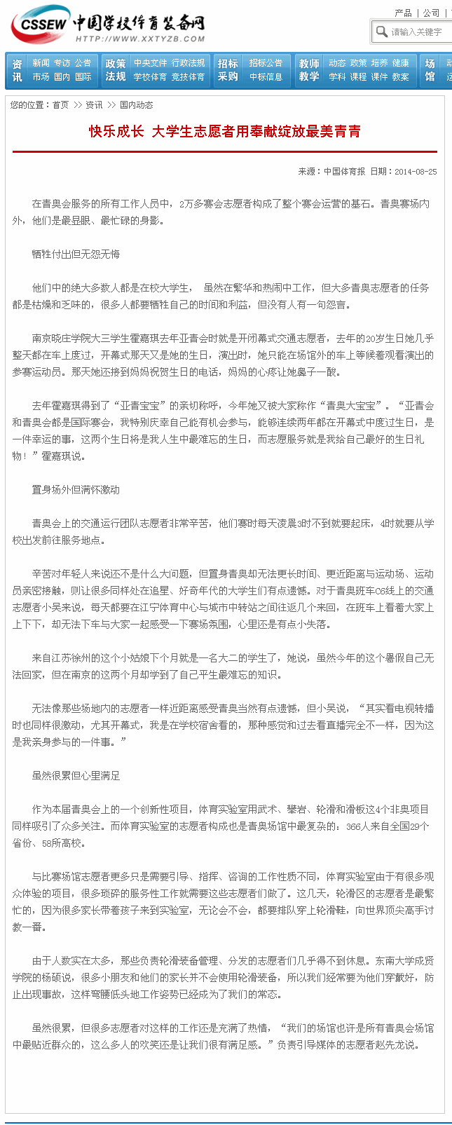 【中国体育报】快乐成长 大学生志愿者用奉献绽放最美青青