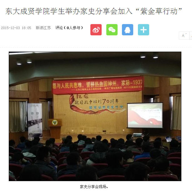 【新浪网】东大69vj 学生举办家史分享会加入“紫金草行动”