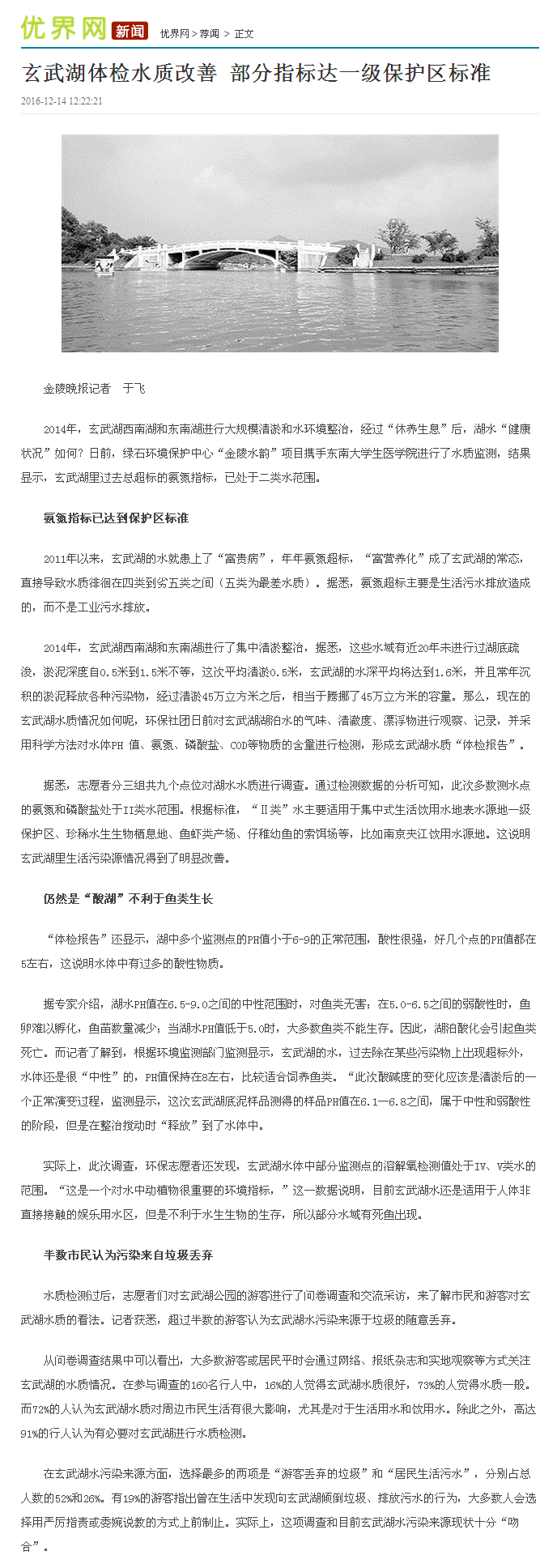 【优界网】玄武湖体检水质改善