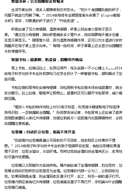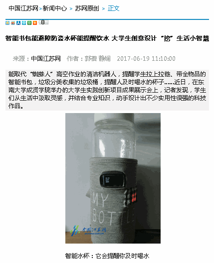 【中国江苏网】智能书包能避障防盗水杯能提醒饮水 大学生创意设计“挖”生活小智慧