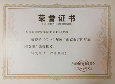 共青团南京市委员会于“五四”前开展了2016年度南京市先进团组织和优秀团员、团干部评选表彰工作。我校336142团支部被表彰为2016年度“南京市五四红旗团支部”。