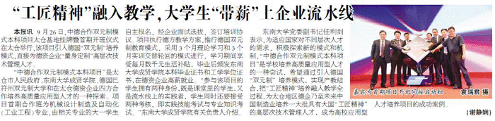 日前,江苏省高校校报研究会公布2017年度江苏省高校校报好新闻评比结果,我校第66期《成贤报》刊登的《“工匠精神”融入教学,大学生“带薪”上企业流水线》荣获消息类三等奖。