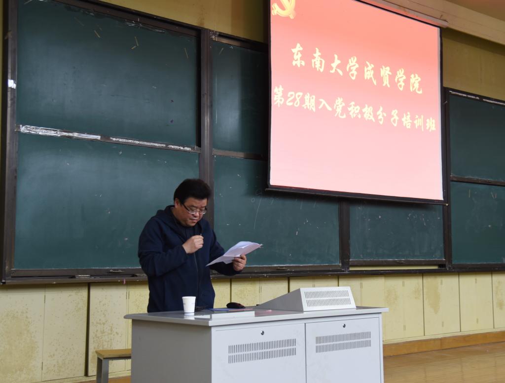 4月9日晚,69vj 第二十八期入党积极分子培训班在华馆101教室正式开班,全院359名入党积极分子参加培训。学院党委委员、常务副院长郑建勇出席开班仪式并作动员讲话,各总支组织委员、综合办主任和部分辅导员参加,机械与电气工程系党总支书记韩苏扬主持仪式。