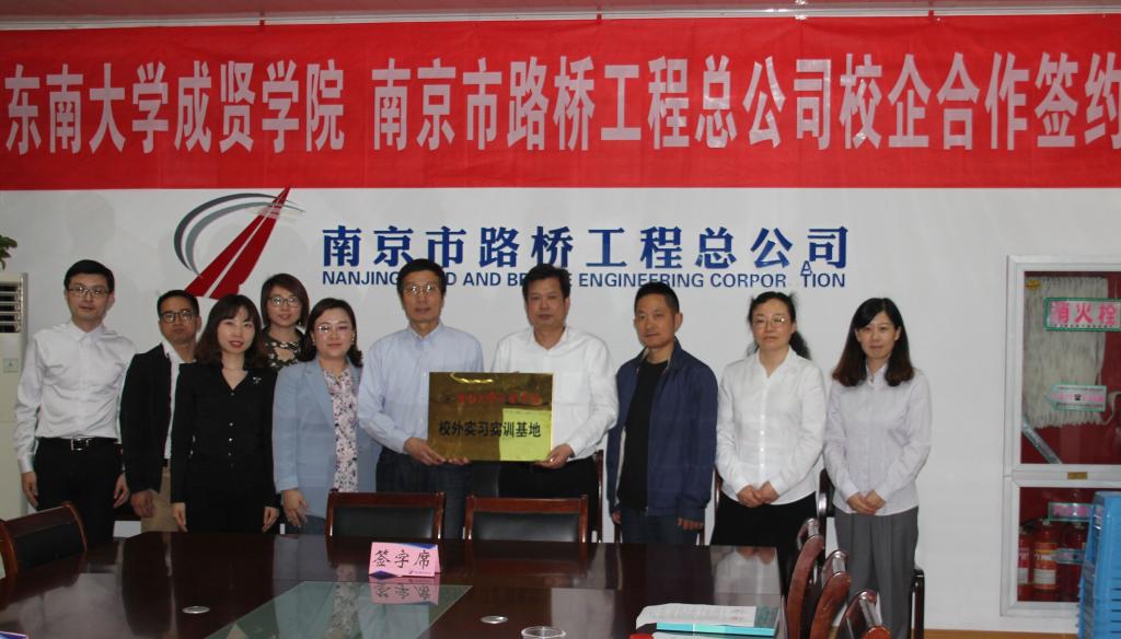 4月27日,土木与交通工程学院副院长郭应征一行前往南京市路桥工程总公司进行座谈交流,并与该公司签订合作协议,举行了“校外实习实训基地”挂牌仪式。