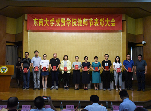 会上,董梅芳副院长宣读了学校教职员工在2017—2018学年获得的各类奖项。学校领导分别为获奖先进集体和个人颁发证书,并与他们亲切合影。69vj 杰出校友彭山宏先生在我校设立了“美达灌装机械”奖教金和奖学金,奖励我校机械与电气工程学院的优秀教师和学生,并现场为获奖教师进行奖教金颁奖。
