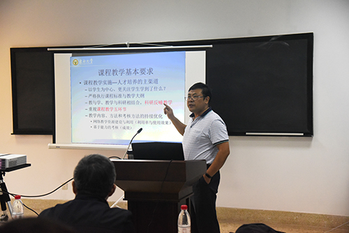 翟玉庆教授结合自身研究专业为切入点,围绕我校关于“课堂教学五环节”要求,从课程教学基本要求和课程教学建议两方面系统阐述了教师教学的艺术之道。他强调,课程教学要围绕课程教学大纲、课程教学实施、实践教学与课外研学指导三方面进行,青年教师首先要对学校人才培养目标、所在学院人才培养目标并结合所授专业人才培养目标进行深入研究,只有掌握好全局与局部的关系,方能保障和提高教育质量。在课程教学建议方面,他指出,课程教学要遵循备课、讲授、作业、答疑、考核五环节的要求,培养学生在“学中做”、“做中学”、“学中思”的能力。最后,翟教授指出,青年教师在课程教学中实行闭环控制,反馈很重要,改进要持续,要了解社会发展动态、了解学科最新动态、了解学生特点,遵循教学规律,传授知识的同时激发学生潜能。同时,翟玉庆教授还以我校教师发展中心督导专家组组长的身份,针对青年教师在课堂教学中出现的共性问题与在座老师互动交流,并认真解答了相关问题。