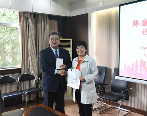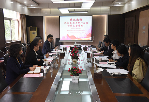 10月24日下午,韩国庆熙大学技术经营大学院申尚協院长等一行五人访问了我校。校副院长董梅芳等接待了韩国来宾,双方在真知馆二楼会议室进行了亲切友好的会谈。
