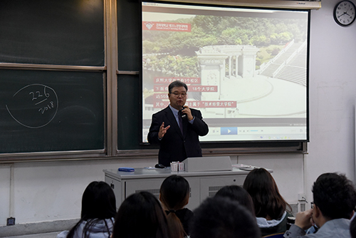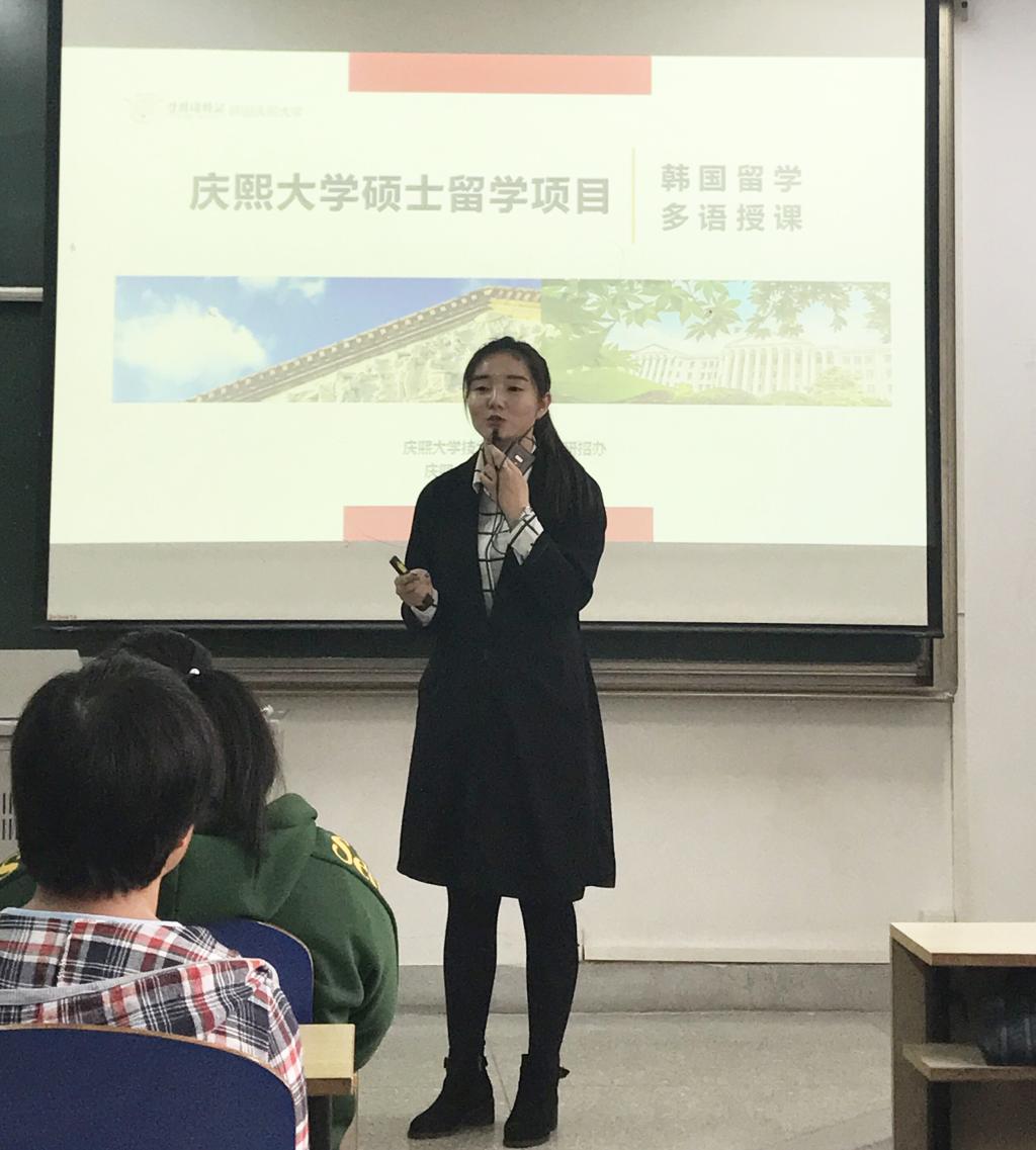 会议结束后,申尚協院长和陈筱老师在华罗庚馆202为学生们做了中文MBA项目专场宣讲会,100多名同学参加了宣讲会。会上,申尚協院长用英文介绍了韩国庆熙大学并向在座学生表示欢迎大家报考韩国庆熙大学。随后陈筱老师从学校概况、申请专业、学位授予、收费标准、项目优势、报名方式等方面向学生们详细的讲解了关于韩国庆熙大学中文MBA项目的具体情况。在场的学生反响热烈,气氛融洽。