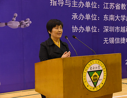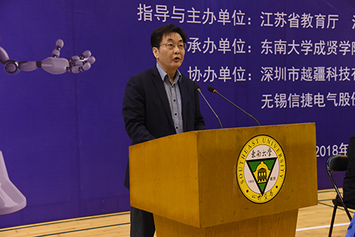 3日上午,开幕式在我校后藤体育馆举行。我校党委书记徐悦致欢迎词,江苏省科协副巡视员杨文新、江苏省自动化学会秘书长李世华教授分别致辞,江苏省教育厅高教处副处长徐庆宣布大赛开幕。学院副院长董梅芳主持开幕式。