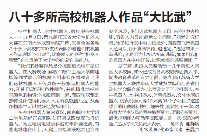 【南京晨报】八十多所高校机器人作品“大比武”