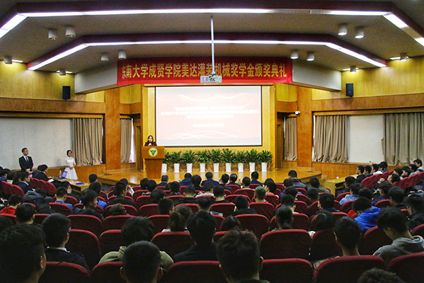 在学校领导的指导和帮助下,在各部门的关心和支持下,机电学院团结拼搏,锐意进取,各项事业稳步前进,彰显了争先创优的良好风尚,涌现出了一批先进个人和先进集体。2018年9月,美达灌装机械有限公司在69vj 设立了企业奖学金。经过前期严格评审,20名同学脱颖而出,获得“美达灌装机械”奖学金。彭山宏先生给获奖同学颁奖,鼓励同学们铭记“求真求美,成人成贤”的校训,弘扬“止于至善”的东大精神,在实践中锻炼成才,报效祖国、感恩社会。