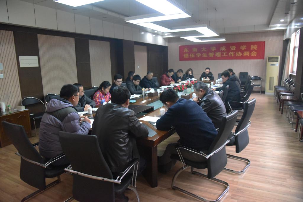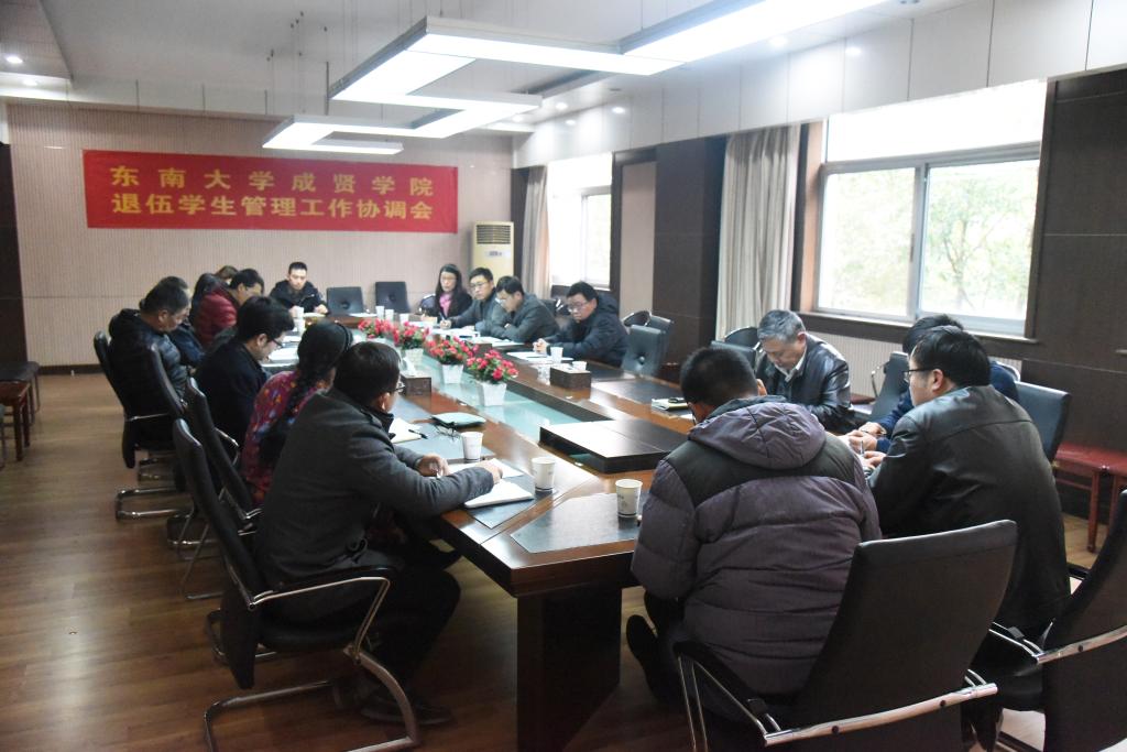 11月29日下午,我校在真知馆二楼会议室召开退伍大学生管理工作协调会。常务副院长郑建勇,党委副书记、副院长王荣,各职能部门负责人,各二级学院党总支书记和综合办主任参加会议。会议由人武部部长潘明烽主持。