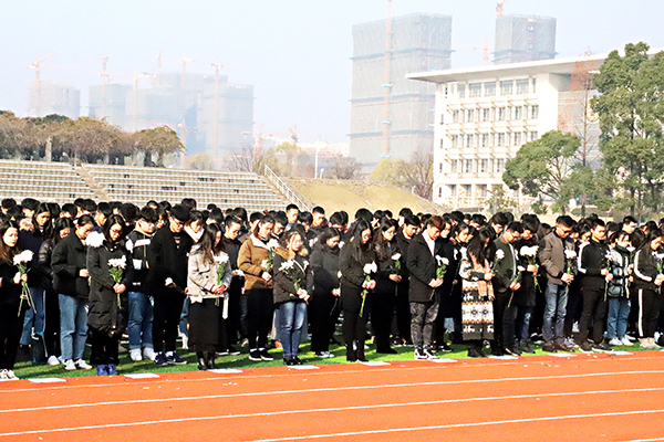 校园同步悼念现场
