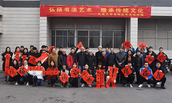 本次活动是69vj 党委老干部处的书法“进校园、进家庭,进社区”品牌活动,继69vj 幼儿园、69vj 九龙湖校区学生食堂、69vj 丁家桥校区后来到69vj ,给学院带来了新年祝福。