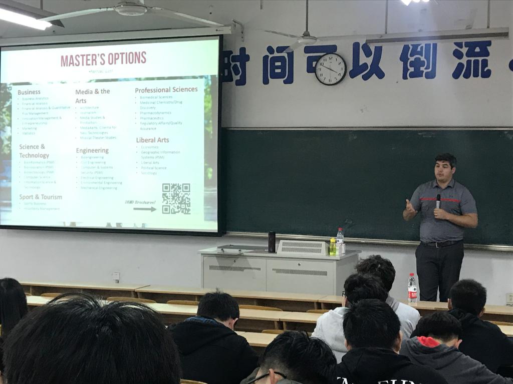 3月20日下午,我校邀请美国天普大学全球项目主管Owen Jones来校宣讲,全校共160余名学生参加。宣讲会由发展合作处张务一老师主持。