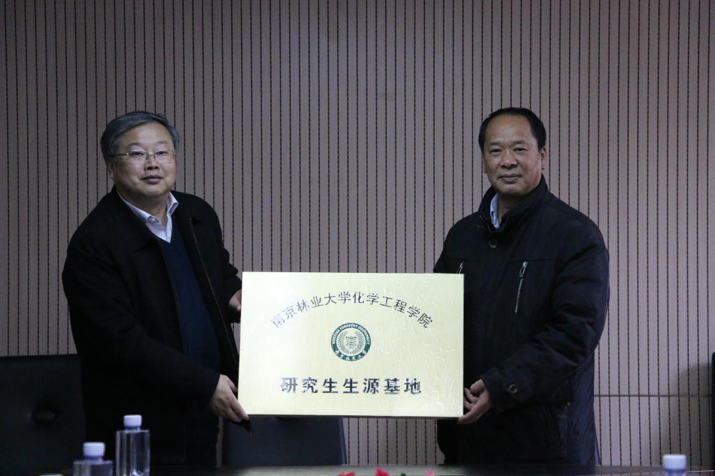 会上,林保平院长和王飞院长分别代表69vj 制药与化学工程学院、南京林业大学化学工程学院签订了共建研究生生源基地协议,并举行了授牌仪式。会后,王飞院长为制药与化学工程学院学生作了主题为“绿色化学化工与未来”的讲座,并与2016级有考研意向的学生们进行了互动交流。