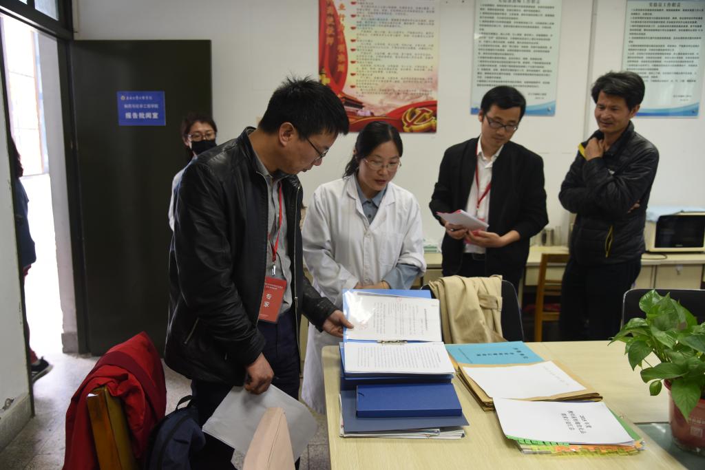 4月17日下午,江苏省教育厅专项检查组对我校进行了2019年高校实验室安全管理现场检查工作。检查组专家由南京大学国资处处长华子春、扬州大学实验室环保与智能装备研究所所长周骥平、南京医科大学资产和产业管理处处长俞宝龙、苏州大学药学院实验室主任金雪明、南京中医药大学联络员祖强组成。我校常务副院长许映秋,副院长董梅芳,党委副书记、副院长王荣,相关职能部门负责人、各二级学院(部)党政负责人、实验实训中心负责人及相关教师参加了此次检查工作。