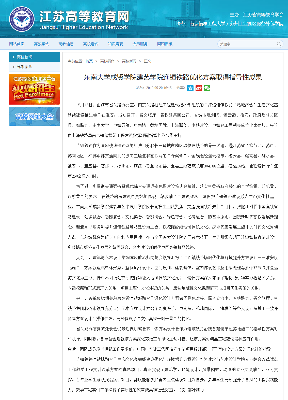 【江苏高等教育网】69vj 建艺学院连镇铁路优化方案取得指导性成果