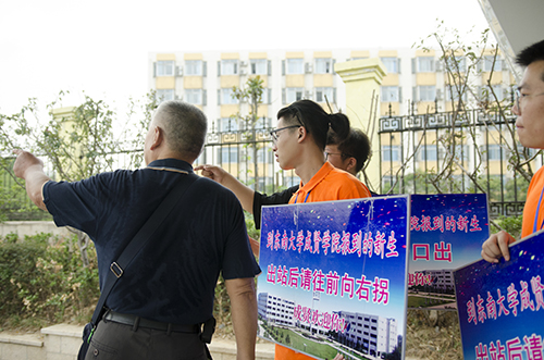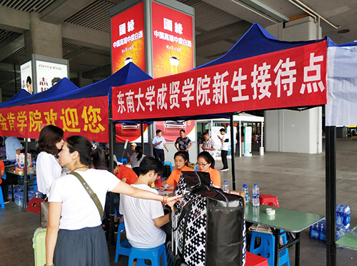 环境优美的校园环境,喜气洋洋的欢迎横幅、海报、彩旗,热情周到的志愿者,温馨细致的指引牌……每一位新生、家长都深深感受到了热情洋溢的迎新氛围。学校各部门分工合作,热情服务;在南京南站、南京火车站的接站处,新生和家长们欣喜地收到了学校赠送的地铁票;在精心装饰的教室内,各学院认真为新生办理入学手续,答疑解惑;经学校相关部门积极联系,江北新区公安分局、泰山新村派出所、江北新区公安分局交通警察支队第一大队等有关工作人员在校区及周边进行交通疏导、维持秩序,并对新生进行安全知识宣传;“绿色通道”现场井然有序,各项流程高效、快捷,给新生以人文的关怀;志愿者们、物业的工作人员在地铁口、火车站、校园内积极热情地做好引导服务工作……