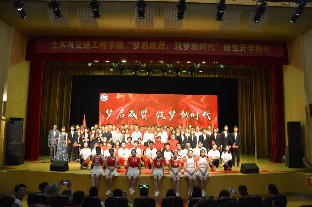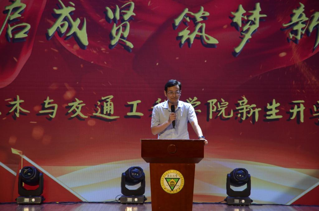 9月27日,我校土木与交通工程学院在大学生活动中心313成功举办主题为“梦启成贤,筑梦新时代”2019级新生开学典礼。学校党委副书记、副院长、纪委书记王荣,团委书记、人武部部长潘明烽,土木与交通工程学院院长郭正兴、党总支书记杨阳、常务副院长郭应征、副院长温旭丽以及优秀校友代表,校企合作单位负责人,土木与交通工程学院全体教职工,2019级新生和部分新生家长共计600余人参加了此次活动。开学典礼由2019级辅导员田宇婷,2019级工程管理2班吴逸南主持。