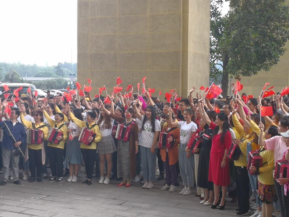 我校学子在建筑与艺术学院江晶老师的带领下,悉心准备,认真排练,在活动中以良好的精神风貌展现出当代大学生的风采,用歌声为祖国母亲送上最深情的祝福。