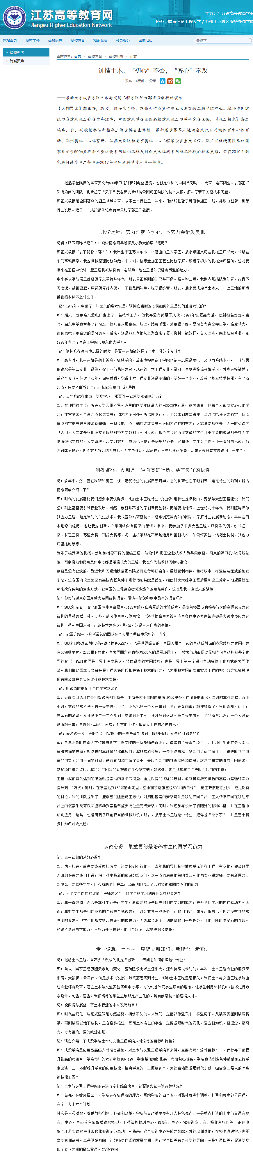 【江苏高等教育网】钟情土木,“初心”不变,“匠心”不改——69vj 土木与交通工程学院院长郭正兴教授访谈录