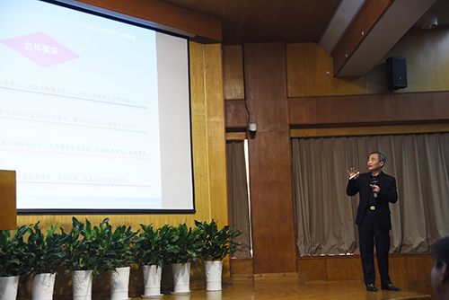 随后,我校建设委员会主任高建国教授主讲了主题教育专题党课。高建国主任以《坚持道路自信,牢记初心使命》为题,为全体教职工阐述了中国共产党人的初心和使命、主题教育的任务目标、坚持道路自信的内涵、社会主义建设面临的问题与挑战以及新时代不忘初心使命的好党员好老师代表的先进事迹。他的讲座观点鲜明、理论系统、数据详实、信息丰富、案例生动,使老师们深受启发。