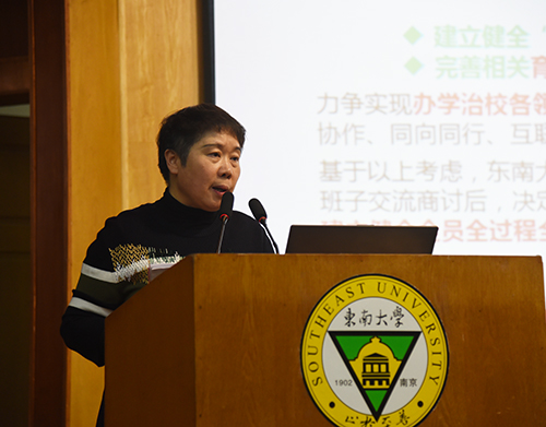 首先,常务副院长许映秋就“大学工大教学”育人机制实施工作做动员讲话。她指出,《69vj 构建“大学工大教学”格局,建立健全全员全过程全方位育人机制实施方案》的印发和动员大会的召开,标志着我校“大学工大教学”育人机制的实施正式启动。她详细介绍了我校“大学工大教学”育人机制实施方案制定的背景、过程和基本框架,并向全校教职工提出三点要求:一要坚持协同融合,切实做到三全;二要坚持改革创新,勇于开拓、敢于突破、善于谋划;三要坚持政策导向,以人为本,保障可持续发展。
