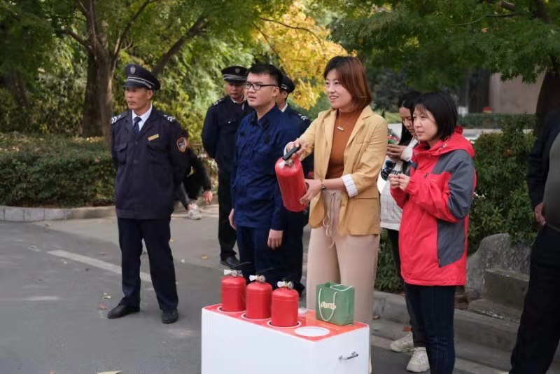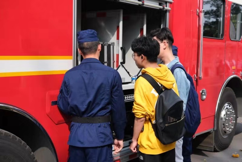 高空缓降逃生、火场实景灭火、应急处置救援等在新闻中看到的场景,在校园就可以亲身体验。11月8日,消防器材及实景体验活动在食堂前主干道开展。通过VR体感等现代信息技术,师生现场体验了不同场景、不同介质的灭火实操以及高空缓降逃生,通过真实的场景模拟,增强了师生的代入感与实操感,更好地掌握了消防器材的使用方法及处置初期火灾、逃生自救的能力。南京消防泰山中队的队员还现场介绍了部分应急救援设备。