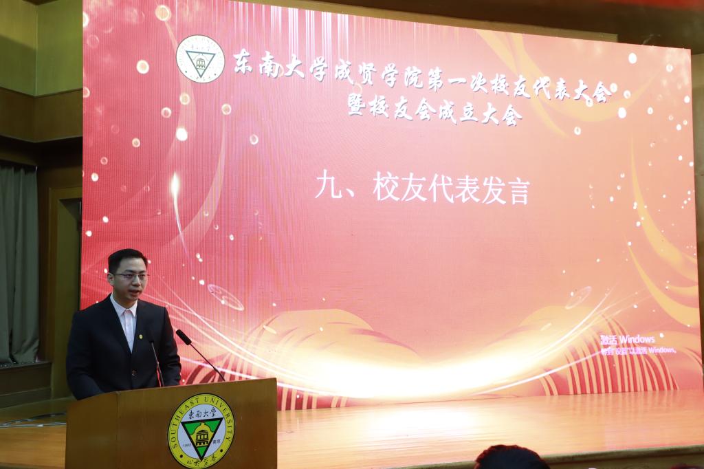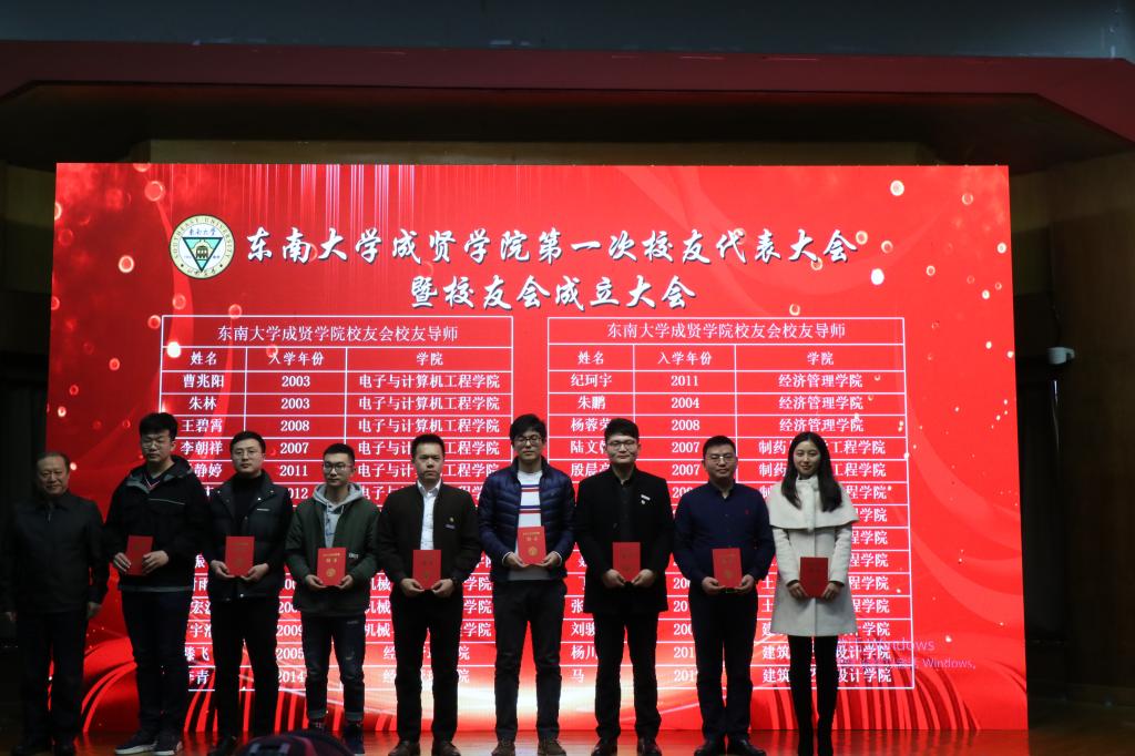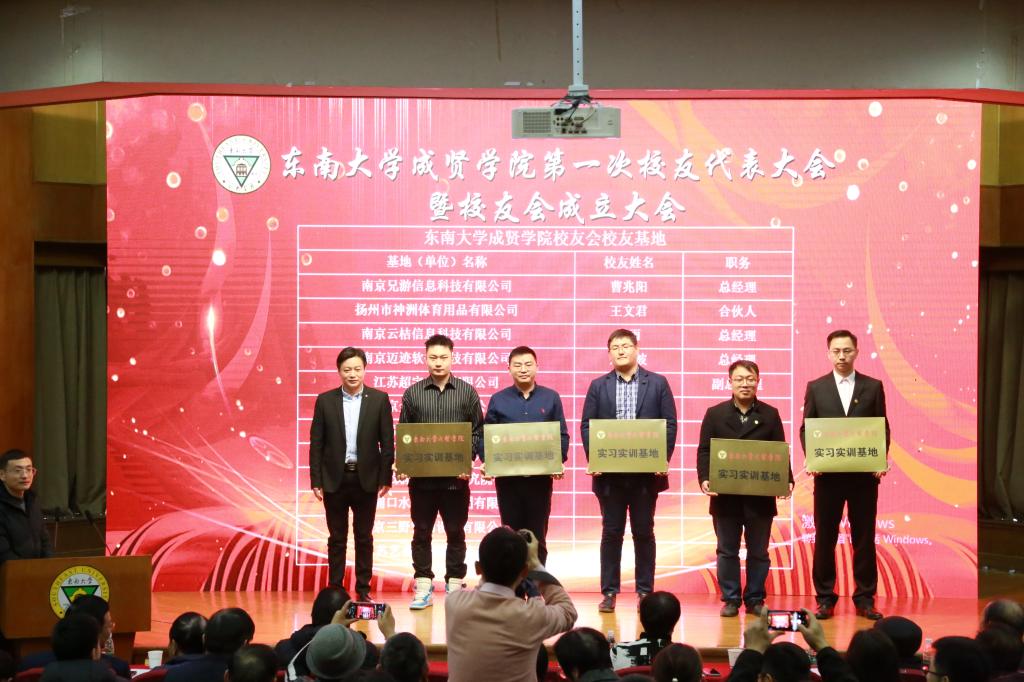 理事会后,大会进行第二阶段议程。校友会第一届理事会会长——常务副院长许映秋发表讲话,感谢学校和各单位对校友会成立的大力支持,并表示校友是学校建设和发展的重要力量,在学校人才建设、对外联络与合作、筹集教育发展基金、提高社会声誉等方面发挥重要作用。许会长代表校友会第一届理事会全体成员承诺:认真履行职责,用扎实的工作为校友会和学校的发展竭尽全力,同时希望广大校友充分利用校友平台携手相伴、同向同行,为母校事业发展群策群力,再谱华章。随后,69vj 校友总会综合部副主任杨丽荣宣读贺信,表达了69vj 校友会对成贤校友会创建的大力支持。紧接着,校友代表曹兆阳发言,他在讲话中回忆了美好的成贤生活,感谢校友会为母校与校友搭建了桥梁,号召校友们为母校的发展不断作出贡献。最后,院长顾问程明山为69vj 校友导师颁发聘书,党委书记邢纪红为校友企业授牌,常务副院长许映秋为校友会信息平台系统技术顾问薛军颁发聘书。