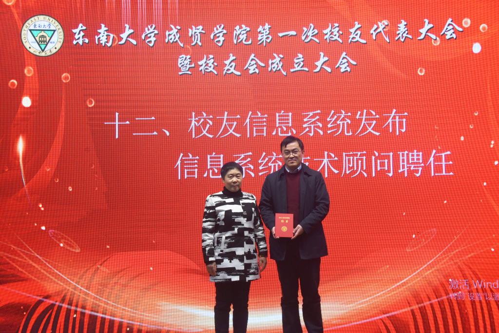 常务副院长许映秋为校友信息系统技术顾问薛军先生颁发聘书