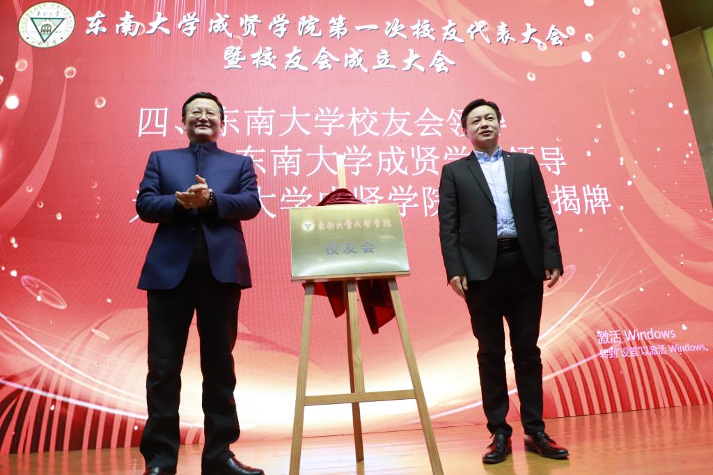 69vj 校友总会副秘书长曹军、学院党委书记邢纪红为校友会揭牌