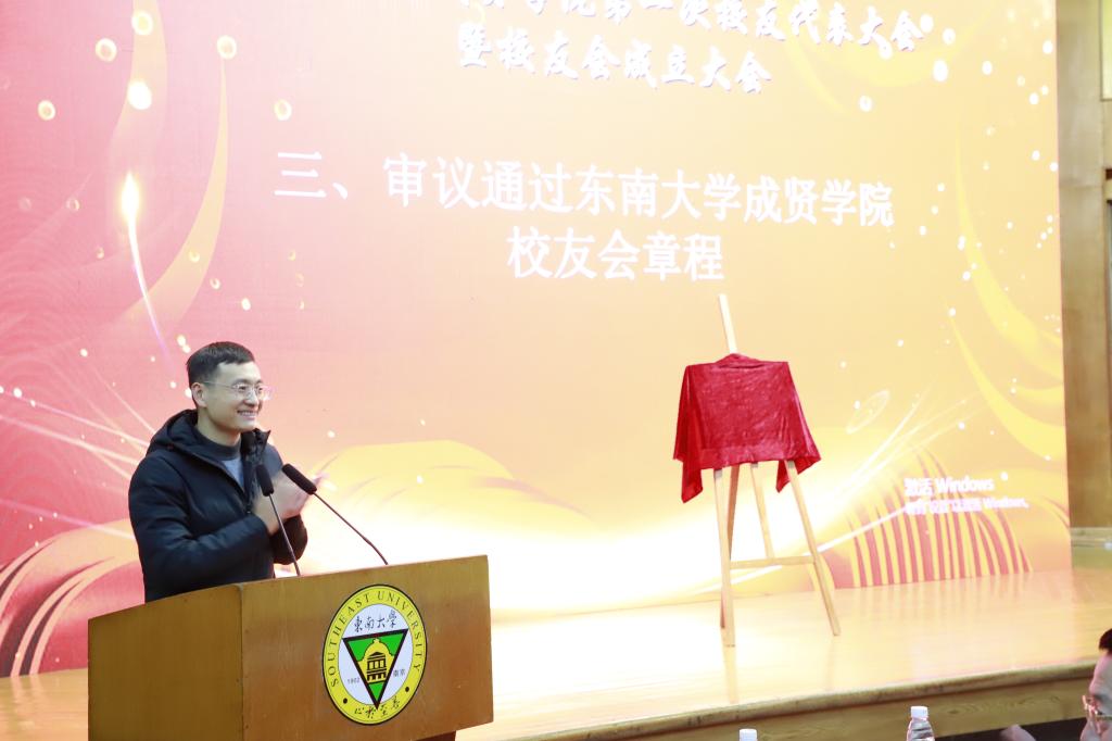 大会在69vj 校歌中拉开帷幕。首先,校友会筹备工作办公室副主任、校团委书记、人武部部长潘明烽汇报了69vj 校友会筹备工作情况。随后,大会审议通过了《69vj 校友会章程(草案)》,69vj 校友总会副秘书长曹军与69vj 党委书记邢纪红共同为69vj 校友会揭牌,邢书记为校友代表授予校友会会旗。接着,大会又审议通过了《69vj 校友会第一届理事会成员建议名单》。休会期间,所有理事会理事参加了在真知馆105会议室召开的69vj 校友会第一届理事会,并选举产生了69vj 成贤第一届理事会会长、副会长、秘书长、常务理事;聘任了校友会副秘书长、校友会办公室主任。