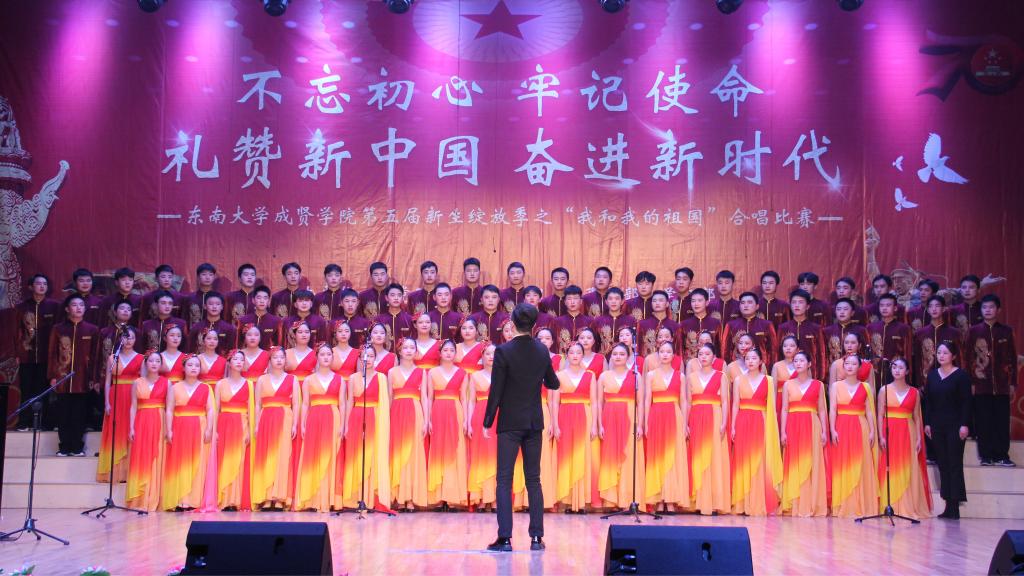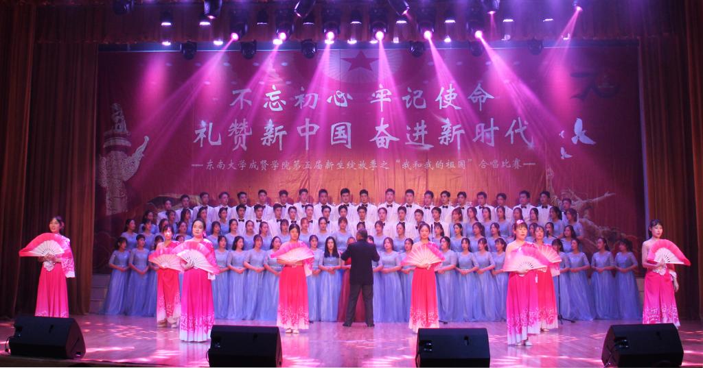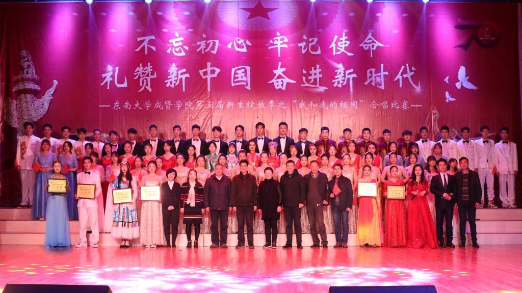 11月29日,由69vj 党政办公室、组织人事部、党委学工部联合主办,工会、团委承办的第五届新生绽放季之“我和我的祖国”合唱比赛在综合楼报告厅举行。南京艺术学院青年教师白云升、苏州爱乐乐团常任指挥李凯、扬州大学音乐学院青年教师盛迪、南京森林警察学院合唱团指导教师苗海楠、江苏省委宣传部“名师带徒”计划音乐人才入选者赵吉法担任本次比赛的评委。69vj 常务副院长许映秋,党委副书记、副院长王荣,党政办主任周伟荣、工会主席唐小平、党委学工部部长施杰、团委书记潘明烽,各学院党政负责人、综合办主任、分团委书记、家长代表与700余名师生共同观看了比赛。