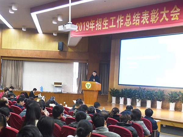 党委书记邢纪红做大会总结,他首先代表学校对2019年招生工作成效表示肯定,对受表彰的先进集体和优秀个人表示热烈祝贺。他指出,全校要提高认识,从思想、行动上真正重视招生工作,强化忧患意识、责任意识、创新意识;要系统设计、统筹谋划、整体推进招生工作。招生相关职能部门要积极应对国家招生考试制度改革,加强宏观分析,合理布局,重视新媒体的宣传效用。教学相关职能部门、二级学院要在学科群建设、专业设置、师资力量、教学改革等方面加强工作,不断提高人才培养质量和办学影响力。其它部门要为做好招生工作提供配套保障;各招生组要人员结构合理,分工明确,切实做好与目标中学的联系工作,努力在2020年招生工作中取得更加优异的成绩。