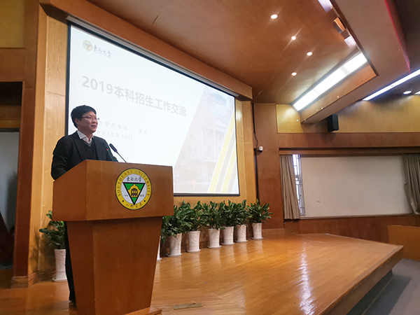 校党委副书记、副院长王荣作2019年招生工作报告,拉开会议序幕。他就2019年招生总体情况、招生工作措施、存在的不足与面临的形势进行全面、深刻的解读和分析,并指出面向高考改革促进招生工作的方向。随后,各招生组分片区进行研讨。