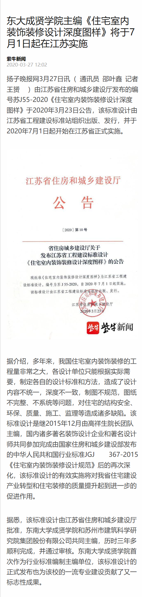 【扬子晚报】东大69vj 主编《住宅室内装饰装修设计深度图样》将于7月1日起在江苏实施