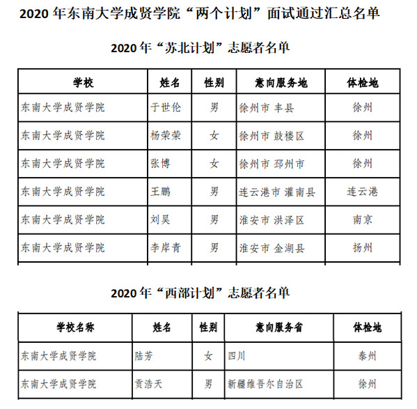 今年,我校“两个计划”共有43人报名并顺利通过系统审核(西部16人,苏北27人),经过团省委筛选,19人收到面试通知(西部4人,苏北15人),最终8人通过面试(西部2人,苏北6人)。我校志愿者们将背上行囊,在新疆、四川及苏北各市参加1-2年的志愿服务。